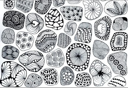 Es geht darum kleine Bilder (in der Regel werden für die Muster 9 cm x 9 cm große Papier oder Karton Zuschnitte genutzt) zu zeichnen und dabei frei von jeglichen Zwängen Muster entstehen zu lassen. Es ist ein meditativer Ansatz und durch das Wiederholen der Motive taucht man langsam in den Zeichenprozess hinein und kommt zu innerer Ruhe. Jedem Motiv, jedem Strich wird die volle Aufmerksamkeit gewidmet, das ist die Herzensangelegenheit der Gründer der Methode. Und am Ende entsteht immer ein kleines Kunstwerk, das so einzigartig wie der Schaffende/die Schaffende desselben ist. Man muss absolut kein Künstler/keine Künstlerin dafür sein. Die Motive können bis in ihre Einzelteile zerlegt und langsam zu einem Ganzen zusammengefügt werden. Fehler gibt es nicht. Abweichungen werden zeichnerisch in die Motivwelt integriert. Zum Zeichen wird nur ein schwarzer Stift und etwas Grau für Schatten verwendet. Die Einfachheit erlaubt es keine Entscheidungen treffen zu müssen. Da das „denkende Gehirn“, das kommentiert, plant, entscheidet und auswertet einen Moment lang ausgeblendet werden soll, um diesen Ruhezustand zu erreichen, werden so wenig Entscheidungen wie möglich getroffen. Denn entscheiden zu müssen, welche Farbe ich jetzt benutzen soll, kann schon Ängste hervorrufen, die ja eigentlich vermieden werden sollen.